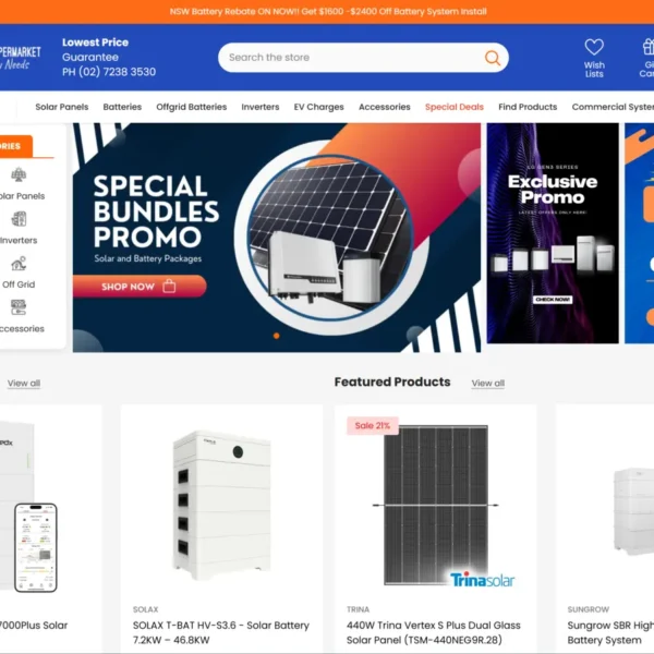 Ecommerce Development, SEO, System Automation, UI/UX Design January 19, 2025 Solar Battery Supermarket Home Solar Battery Supermarket provides Australians with…